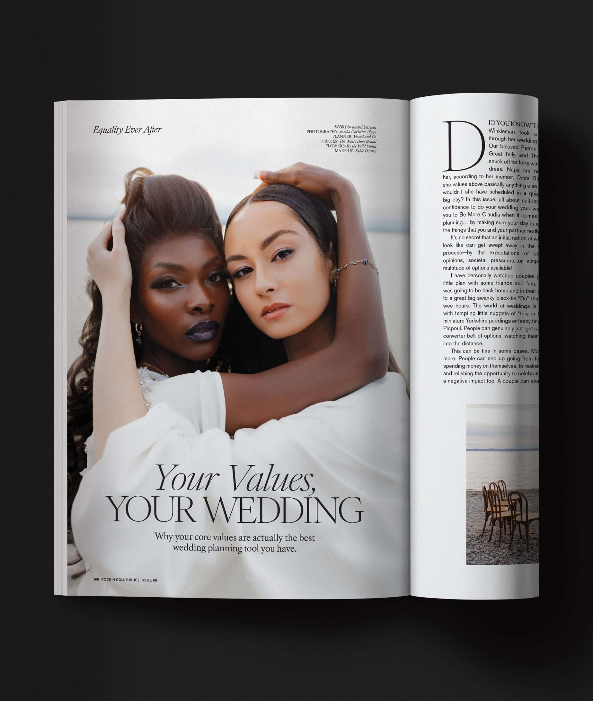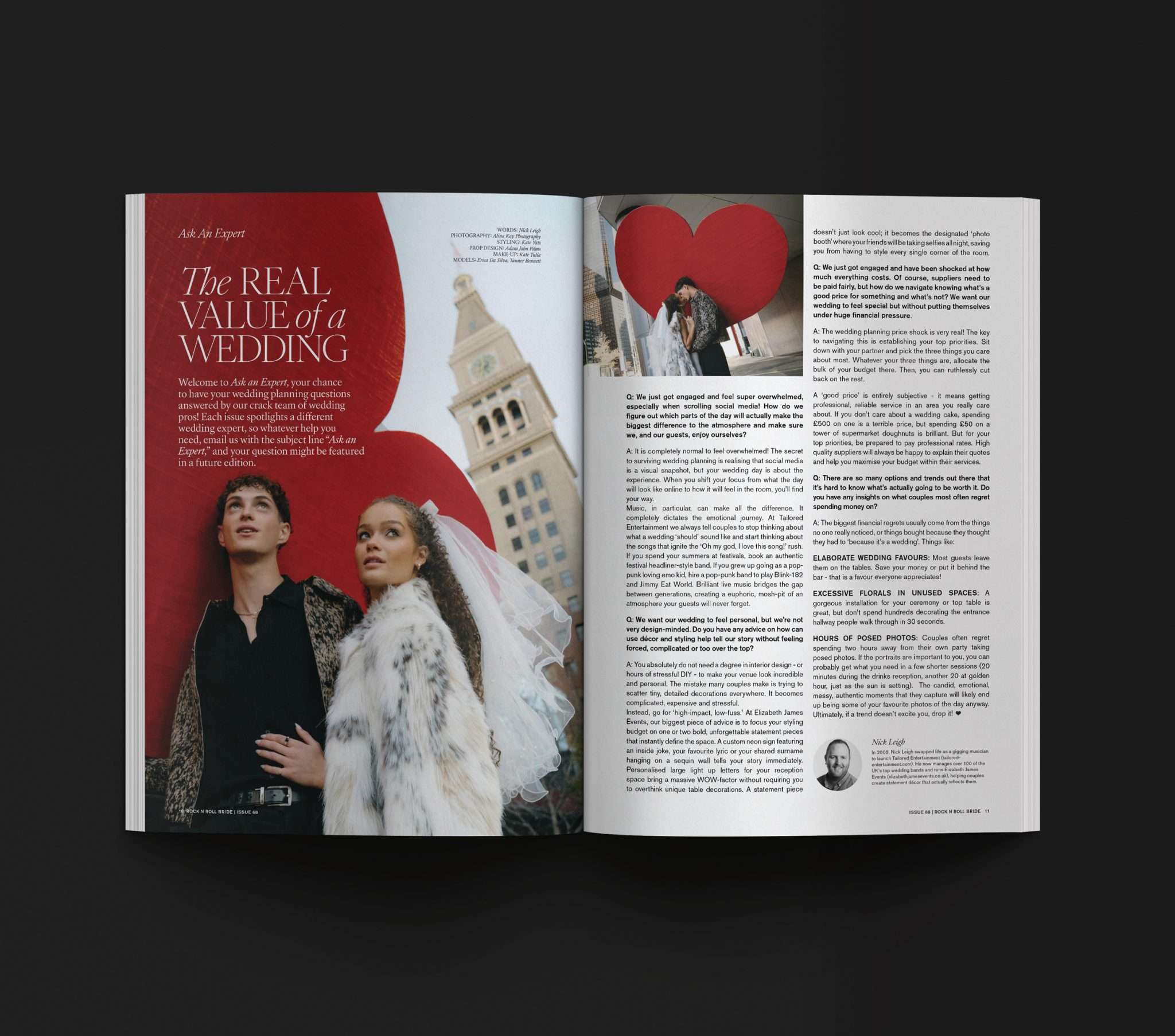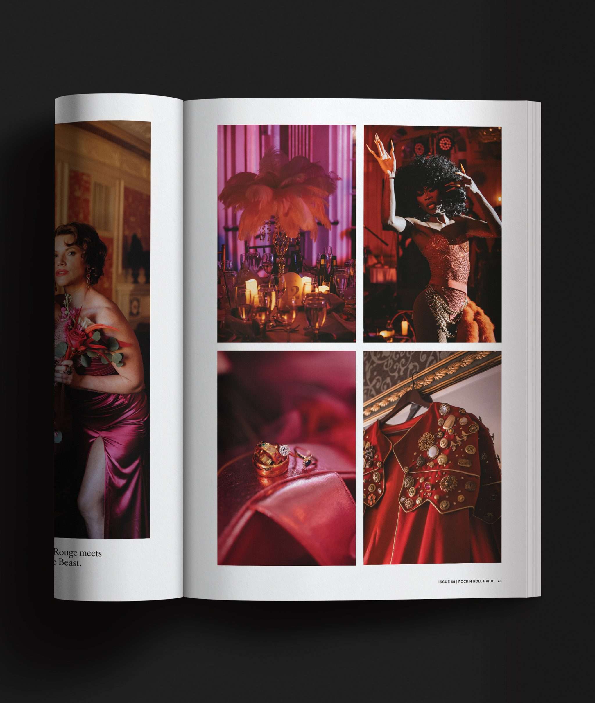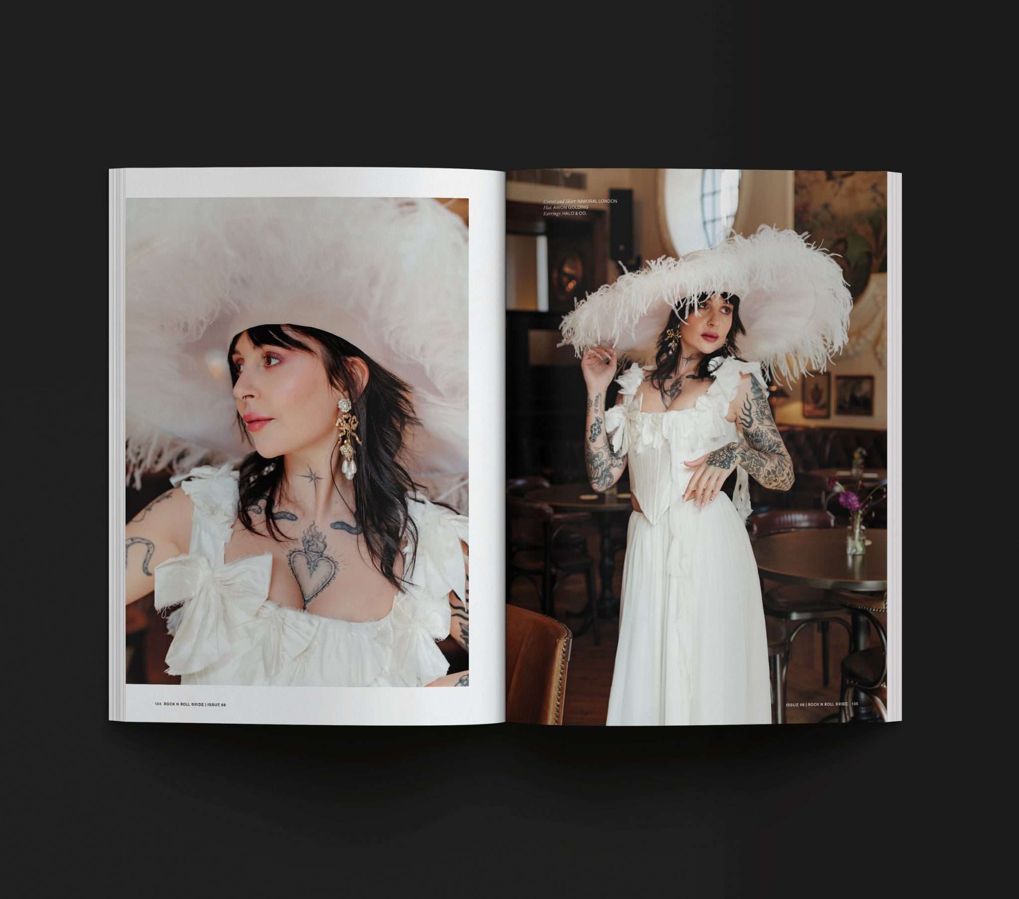 For this issue, I wanted something that felt classic Rock n Roll Bride - tattooed model, chunky jewellery, a black, white and red palette - but with a nod to more traditional bridal styling through lace and corsetry. They’re classics for a reason. If anyone dares ask what you’re going to look like with “all those tattoos”, feel free to throw a copy of this issue in their direction!